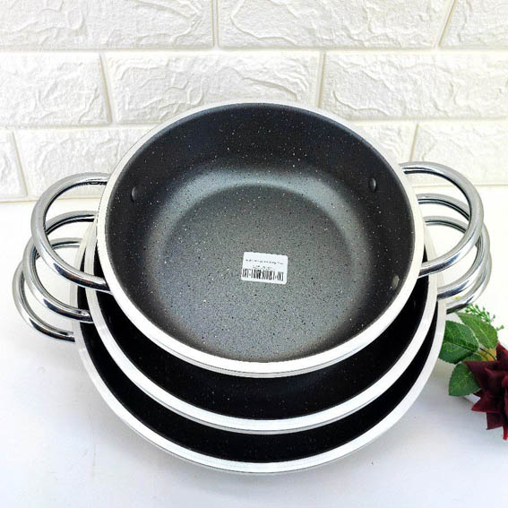 سه تابه دو دسته نقره ای طرح چدن صبا مدل 01226