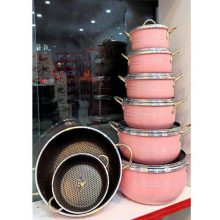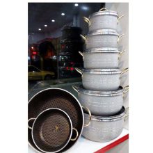 سرویس قابلمه 14 پارچه طرح چدن دسته طلایی هلنا مدل 03515
