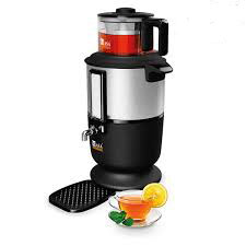 سماور برقی ناسا الکتریک NS-524 مجموعهای کارآمد و حرفهای برای درست کردن چای میباشد. سماور استیل نامبرده توانایی تهیه کردن چای در مدت زمانی کوتاه را دارد و این قدرت و سرعت بالا را باید مدیون توان مصرفی بالای آن بود، که 1800وات میباشد. این توان مصرفی بالا برای سریع به جوش آمدن آب داخل سماور در نظر گرفته شده است. البته توان سماور در حالت گرم نگهدار تنها 165 وات میباشد. سماور برقی ناسا الکتریک از قابلیت گرم نگهدارنده نیز پشتیبانی میکند، این قابلیت از سرد شدن آب جلوگیری کرده و بعد از اینکه آب سماور به جوش آمد، بصورت اتوماتیک فعال میشود. یک کلید پدالی به عنوان کلید روشن و خاموش برای سماور برقی در نظر گرفته شده، که برای روشن کردنش کافی است کلید را به سمت پایین بکشید، تا بعد از به جوش آمدن ترموستات بصورت اتوماتیک خاموش شده و کلید نیز به طرف پایین حرکت میکند. بدنه سماور از جنس استیل زنگ نزن یا اینوکس میباشد، که باعث شده به یکی از با کیفیتترین سماورها تبدیل گردد. بر روی بدنه یک نشانگر میزان آب داخل سماور نیز طراحی شده، تا از وضعیت آب داخل کتری با خبر شوید. ظرفیت کتری 3.3 لیتر بوده و از گنجایش کافی برای پذیرایی کردن از جمعهای بزرگ برخوردار است. این مجموعه دارای پایههای سیلیکونی ضد لغزش میباشد و خطر افتادن سماور برقی را به صفر میرساند. همچنین دو دسته نگهدارنده دو لایه، امکان حمل و جابجایی آن را فراهم آوردهاند. بر روی بدنه شیر خروجی آب با قابلیت بدون چکه تعبیه شده که مانع از چکه کردن آب میشد. قابلیت خاموش شدن خودکار و کنترل دما از دیگر ویژگیهای سماور برقی ناسا الکتریک NS-524 هستند.