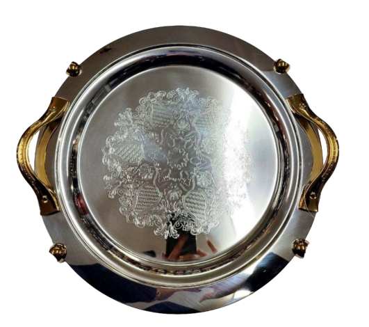 سینی گرد بزرگ دسته طلایی مدل 8768