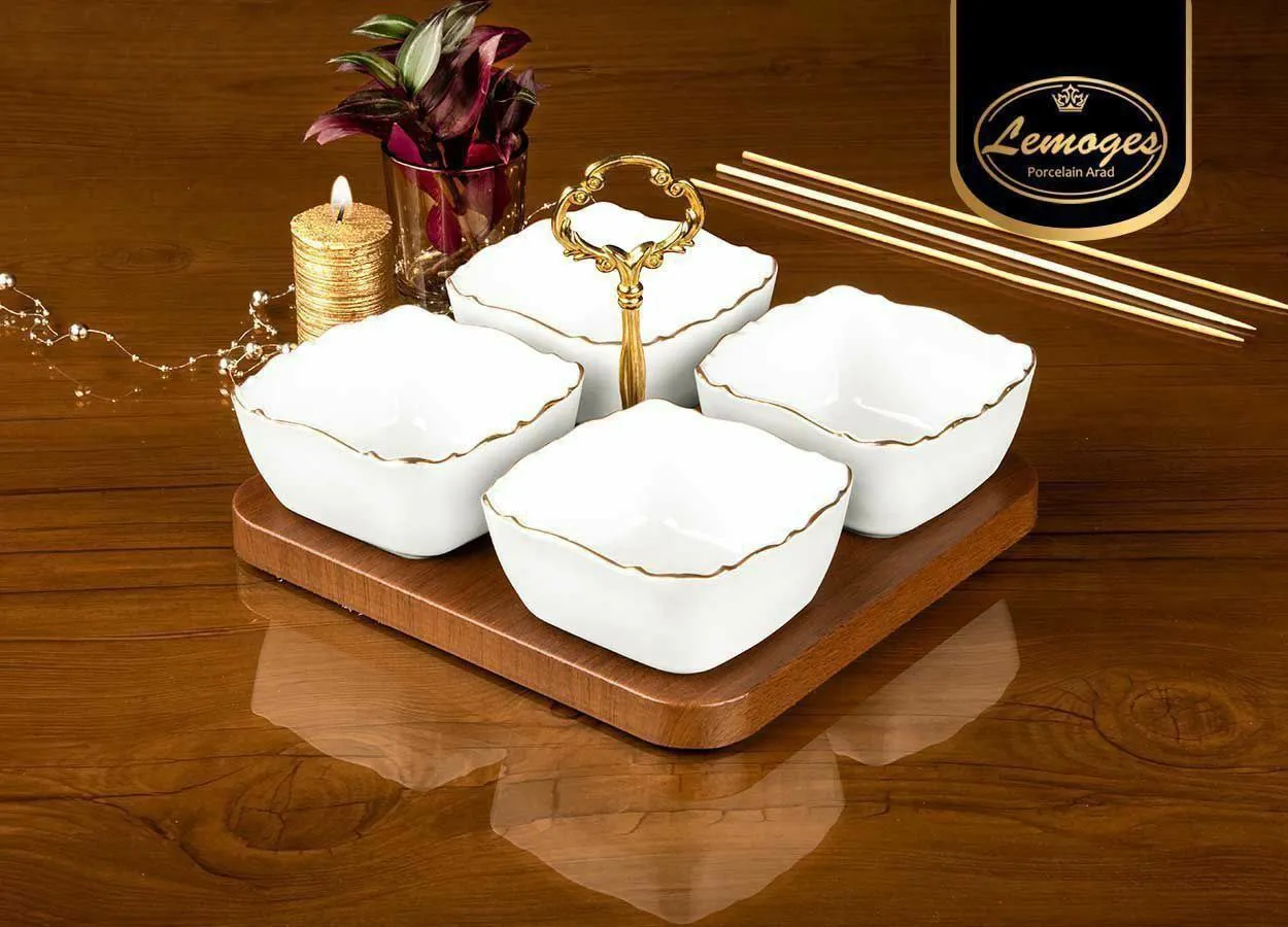 اردو خوری مربع لمون مدل موج 4 خانه لب طلا کد ۳۴۵