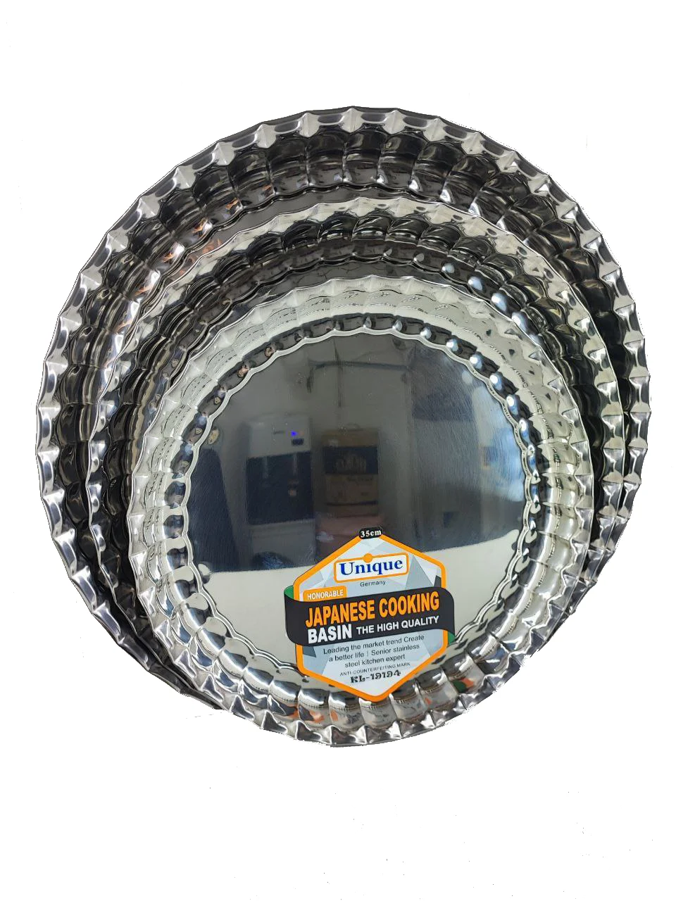 سینی گرد استیل لب کنگره ای نقره ای یونیک