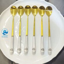 ست قاشق شربت خوری طلایی دسته سرامیکی طرح قلب 6 عددی
