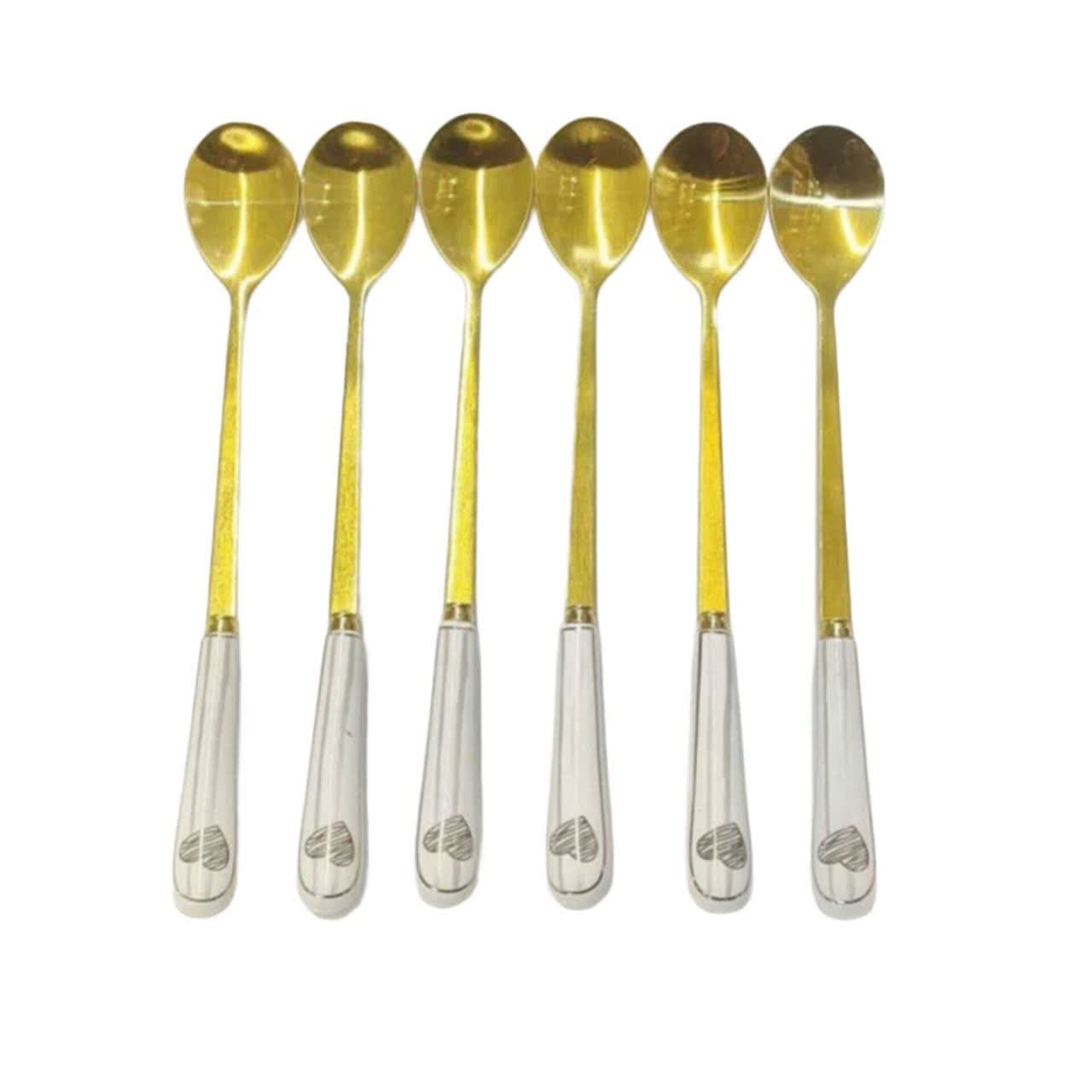 ست قاشق شربت خوری طلایی دسته سرامیکی طرح قلب 6 عددی