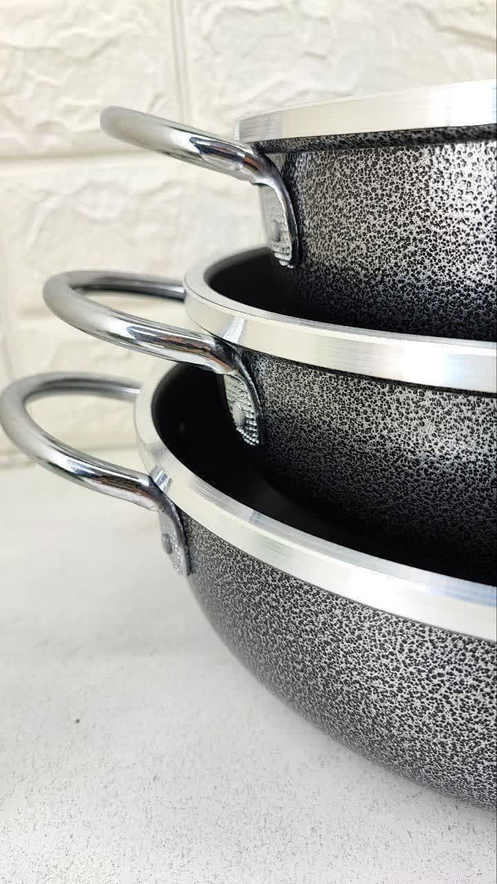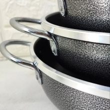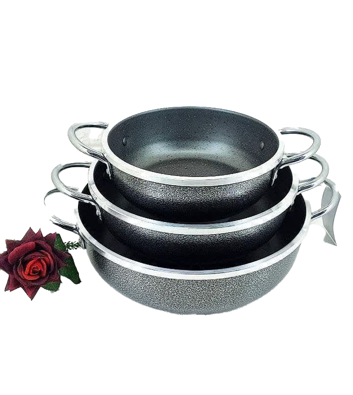 Three pans with two metal and silver handles, cast iron design, Saba and Ensi brandدیگران را با نوشتن نظرات خود، برای انتخاب این محصول راهنمایی کنید.